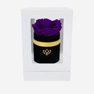 Find chic simplicity in the The Single Rose collection from The Million Roses. One rose says it all in this black suede box adorned with a gorgeous and long-lasting bright purple rose. Our Single Rose design is a perfect gift or fits anywhere in your home – even a desk or an end table. The…
