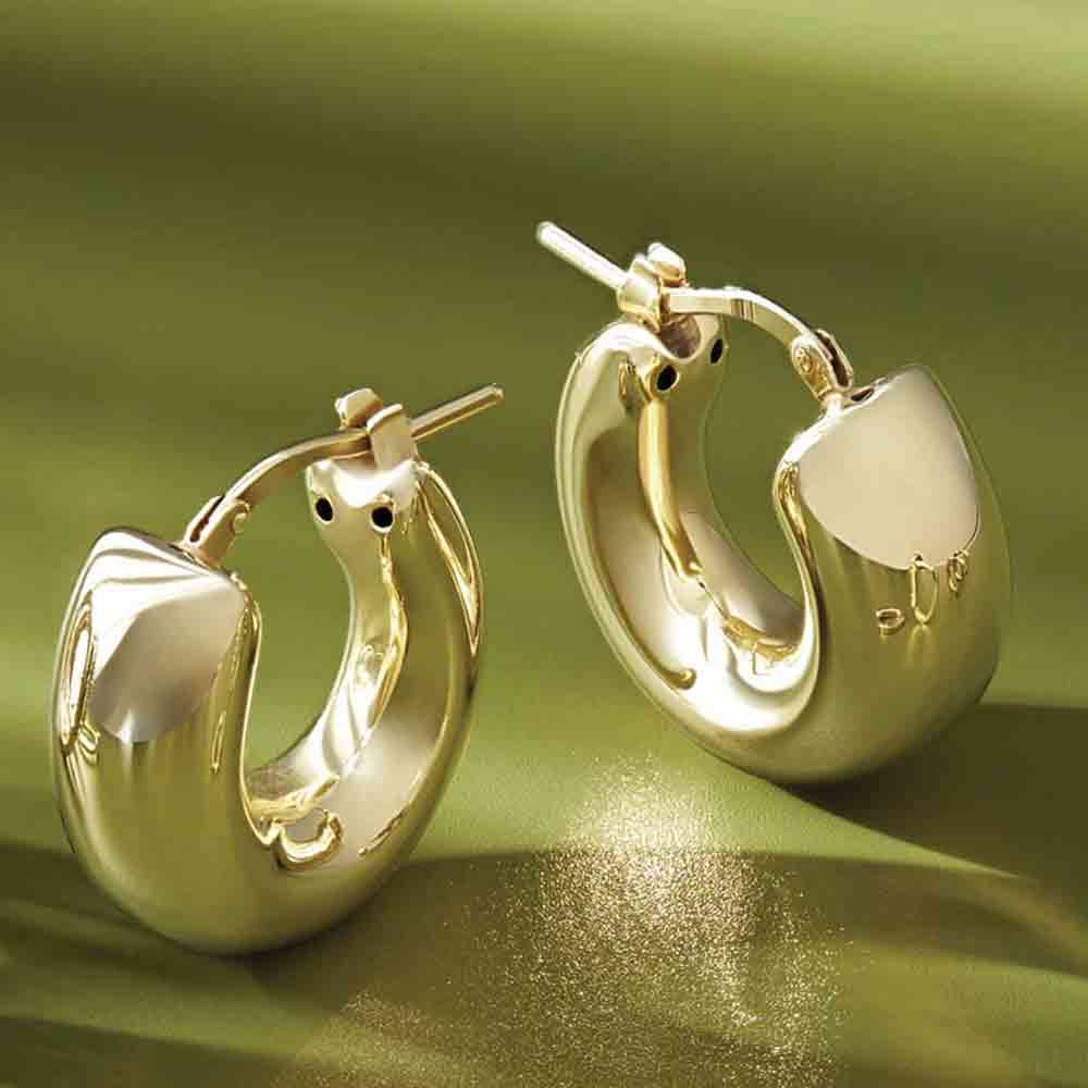 - Hoops are 9mm wide. Each hoop closes with a levered catch.